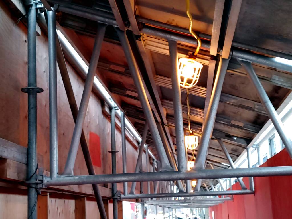 Underneath the roar and hiss of traffic on a busy street at rush hour an almost heavenly chorus of flutey tones emerges intermittently from the hollow pipes of construction hoarding around a condo project as the wind rushes over them on a bitterly cold and windy day.