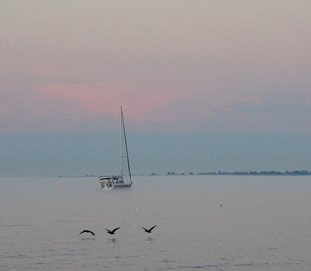 There was a clear sky in places with enough cloud to paint the earth gold on this sunrise. A little low lying fog created layers along The Beach. The Leuty Lifeguard Station provided a strong silhouette for the sun to climb higher into the sky.